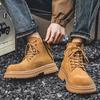 2024 Herbst und Winter Oberste Schicht Rindsleder High Top Stiefel Herrenstiefel Englischer Stil Kurze Stiefel Echtes Leder Plüsch Gelbe Stiefel