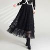 Bust skirt women's spring and autumn high-end pleated long skirt Han Daxiang mesh skirt solid color a word women's drape and thin HD