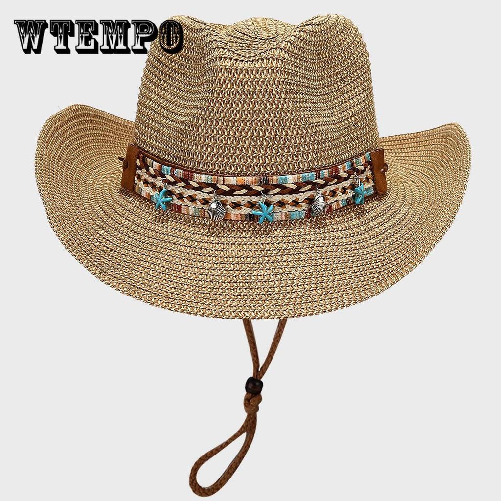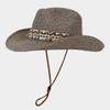 Boho-Chic Handcrafted Straw Cowboy Hat with Blue Accents - Breathable, Lightweight & Stylish for Women