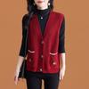Gestrickte Weste mit V-Ausschnitt, Strickjacke, Damen, Frühling und Herbst, lockere Jacke, ärmelloses Westentop mit Tasche
