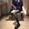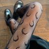 Schwarze Netzstrümpfe für Damen mit Rauten- und Buchstaben-Design
