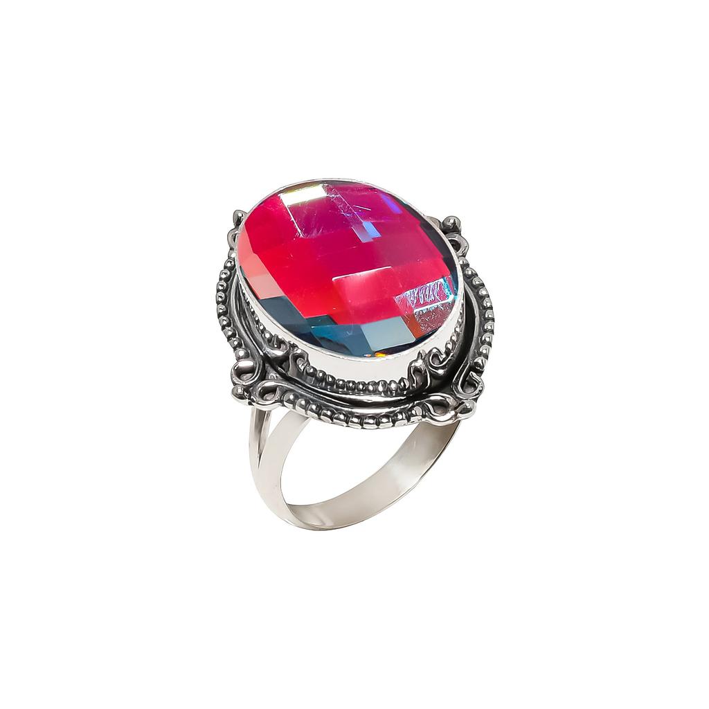 Black Rainbow Mystic Fire Topaz 925 Sterling Silver Ring V6434, Black Ring, Oval Ring, Valentin's Day Gift, Gift For Her, Birthday Gift, Handmade Jewe