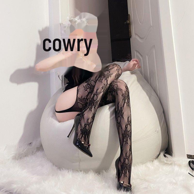 Schwarze Seide Netzstrümpfe mit offenem Schritt und floralem Strumpfhalter-Design