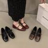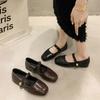 Französische Einzelschuhe Weiblichkeit 2024 neue Herbst- und Winterschuhe braun flach Mary Jane Damenschuhe quadratischer Kopf kleine duftende Fee Schuhe
