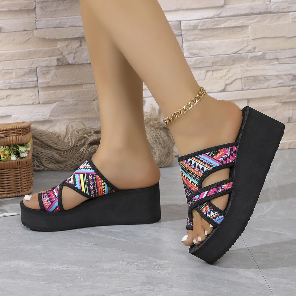 2024 Sommer neue Übergröße Mode Keilabsatz Zehenbedeckt coole Hausschuhe rutschfest verschleißfest weiche Sohle Strandhausschuhe Damen