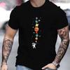 Herren 100% Reine Baumwolle Sommer Locker Übergröße Astronaut Planetenmuster Druck Lässig Bequem Rundhals Kurzarm T-Shirts Herren