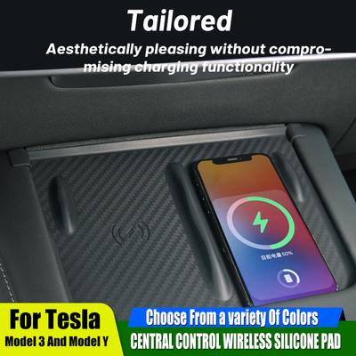 Mit Silikon gefüllte Auto-Rutschmatte Innenraumzubehör für Tesla Model 3 Model Y Neu Silikon Kabelloses Anti-Auto Handy-Laden