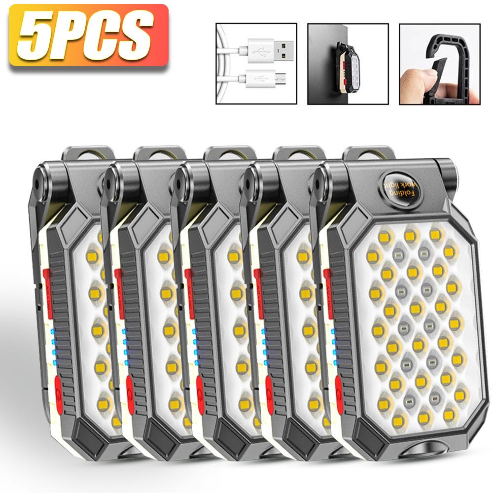 1/2/5PCS Portable LED COB Work Light Rechargeable Flashlight Magnetic Waterproof Camping Lantern Magnet with Power Display