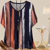 Women's Casual Loose Spring Shirt Women's Short Sleeve Grid Striped Peach Blossom Printed Tops