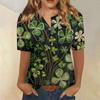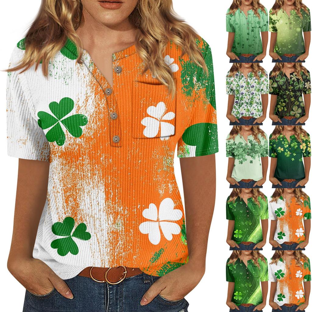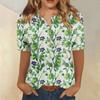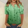 T-Shirts für Damen, plissiert, V-Ausschnitt, elegant, lässig, Blusen, bedruckt, kurzärmelig, Sommeroberteile, lockere Passform