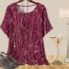 Women's Fashion Casual Loose Spring Shirt Women's Short Sleeve Long Strip Dots Printed Tops