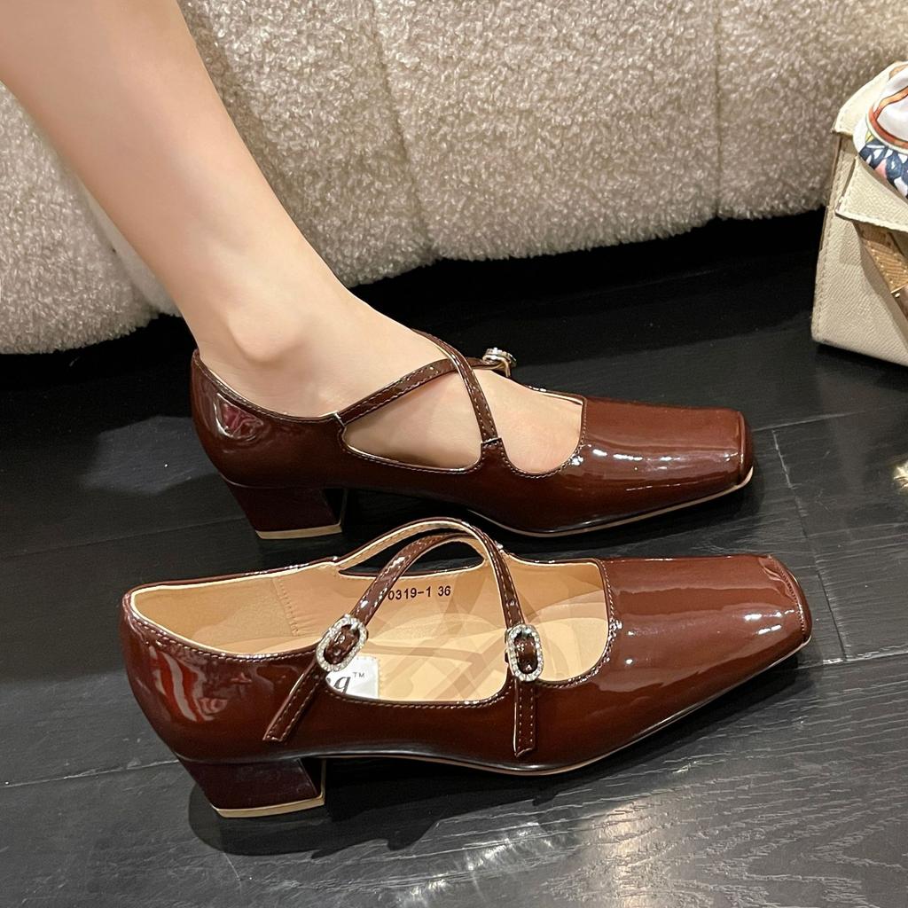 Almond head cross casual French single shoes women's new fashion light mouth square head thick heel Mary Jane shoes