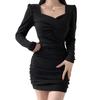 Sexy Rüschen Schwarzes Mini-Kleid Damen Winter Vintage Langarm Unregelmäßiges Design Hochtailliertes Kleid Lässig Abendparty Kleid Neu