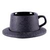 Hochwertiges mattiertes Kaffeetassen- und Untertassen-Set, Keramikteller, Frühstückstasse, schwarzer Löffel mit Getränkehalter.