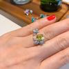 2024 popular retro micro-diamond gold yellow diamond ring female simple temperament pink diamond fairy ring