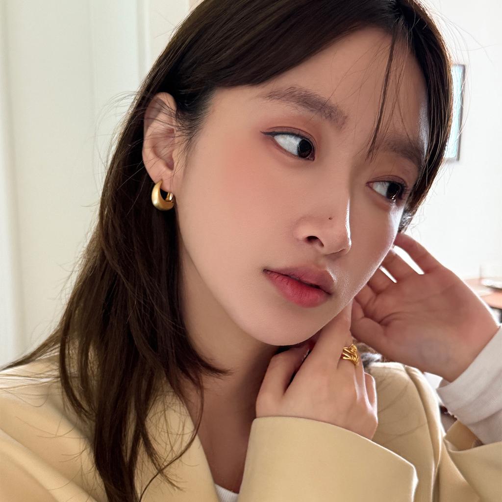 Light luxury brushed plain ring earrings women's niche fashion cold wind silver needle earrings versatile autumn and winter ear buckles