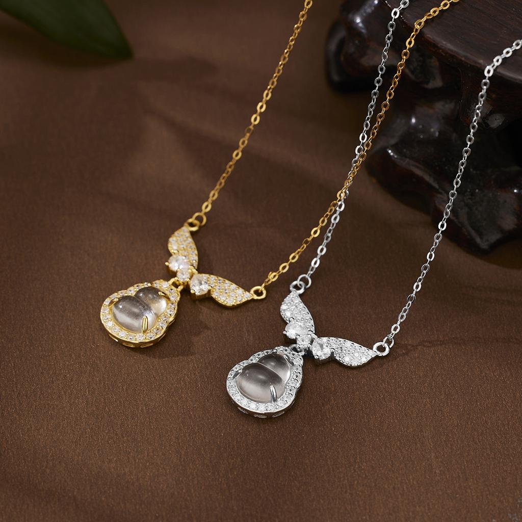 S925 Sterling Silber eingelegte Quarzit Jade Engelsflügel Halskette Damen Licht Luxus Kürbis Anhänger Temperament Schlüsselbein Kette
