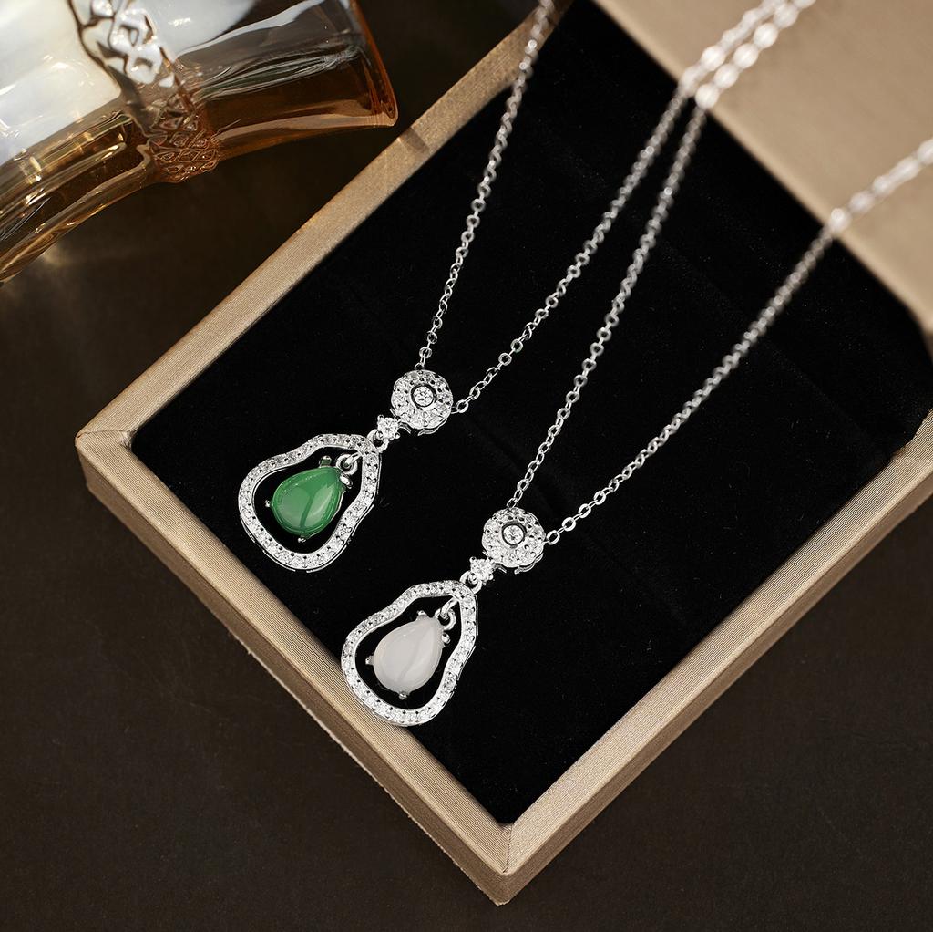 S925 Silber neuer Wassertropfenanhänger, birnenförmige Chalcedon-Kürbiskette, Damennische Zirkon Schlüsselbeinkette Mode