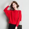Bat Bat Shirt Women's Top Early Autumn New Pullover Version Versatile Loose Bat Sleeve One Collar Knitted Base Sweater