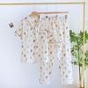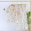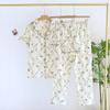 Neuer Damen Frühling Sommer Pyjama Set 100% Baumwolle Kurzarm+Shorts+Lange Hose Dreiteilig Dünn Süße Heimtextilien