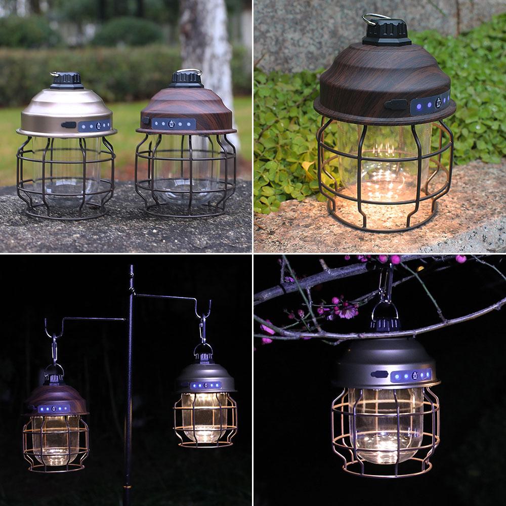 Vintage Metal Hanging Lanterns 3600mAh Battery Dimming Outdoor Retro Led Camp Lantern USB Rechargeable Lightweight Tent Light