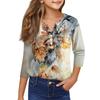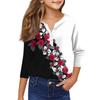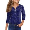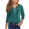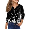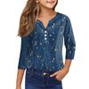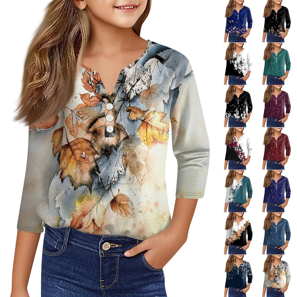 Mädchen Lässige Mode Oberteile Bedrucktes Sieben-Ärmel T-Shirt mit Knöpfen