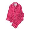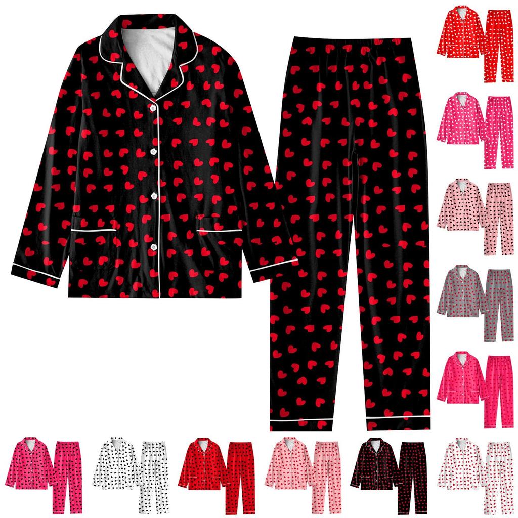 2-teiliger bedruckter Damen-Anzug, langärmelig, Oberteil mit Knopfleiste, weite Hosen, Anzug-Set, Schlafanzug, Home-Casual-Anzug