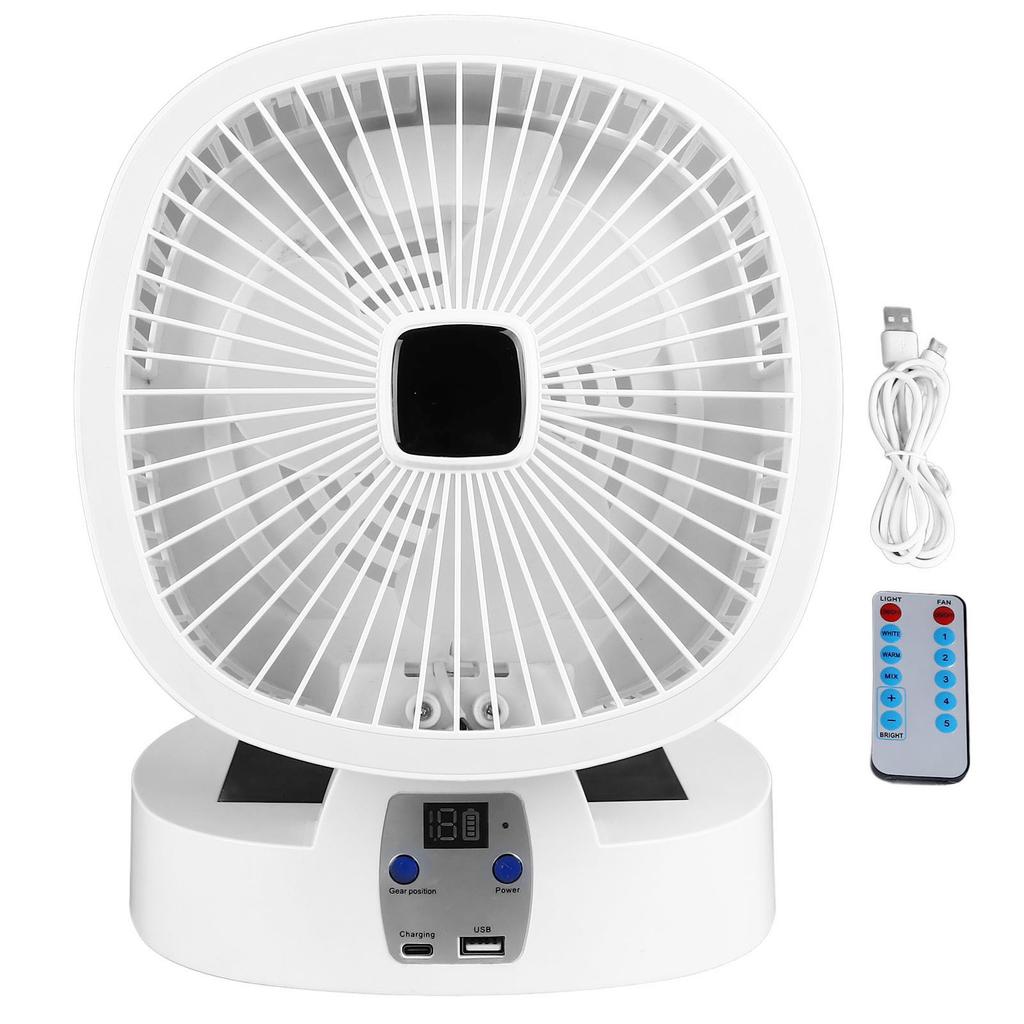 Solar-Camping-Ventilator, zusammenklappbar, wiederaufladbar, solarbetrieben, mit 3 Stufen, LED-Licht, 5 Geschwindigkeiten, leise