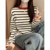 Neuer kontrastfarbiger gestreifter lässiger langärmliger Pullover für Damen im Herbst mit lockerem bauchbedeckendem Unterhemd-Top