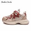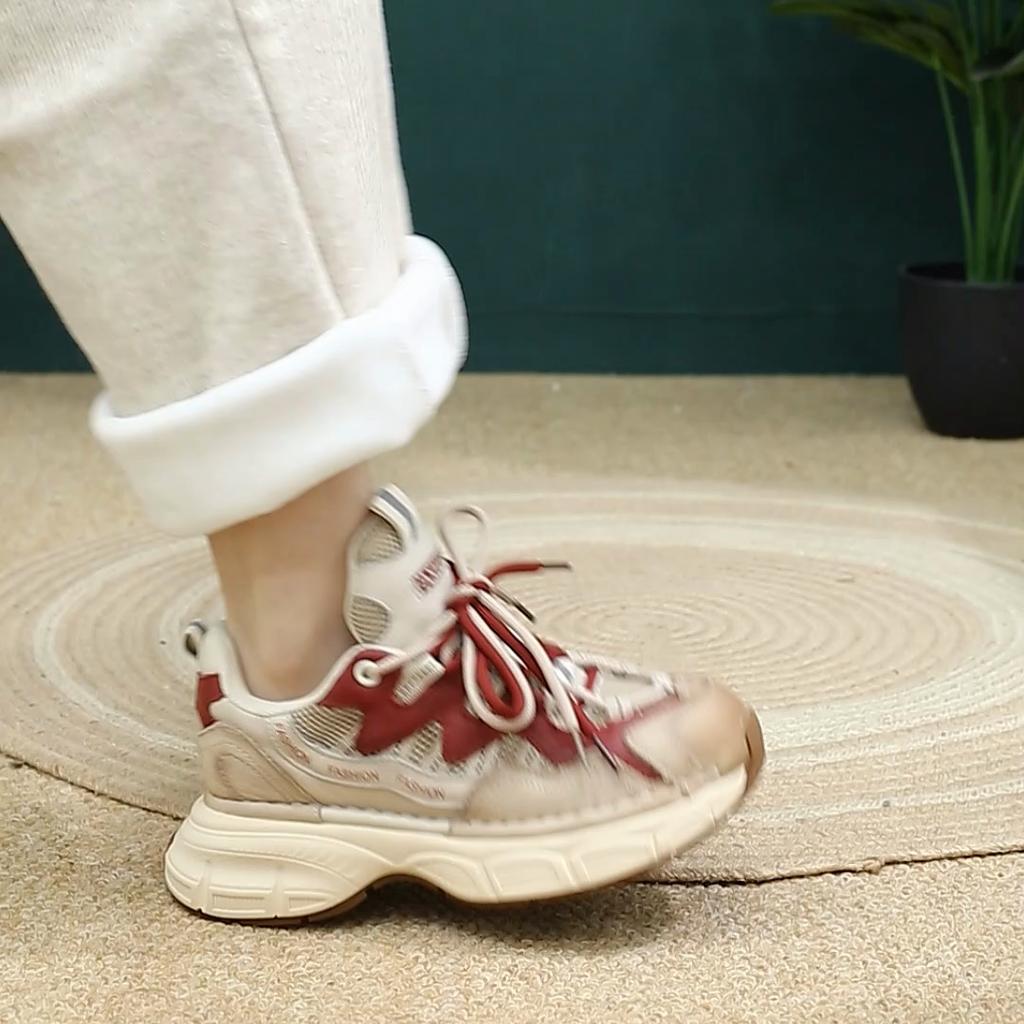 Damen Sneakers aus echtem Leder mit runder Zehenpartie und zunehmender Höhe, modische Freizeitschuhe mit dicker Sohle