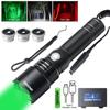 3in1 Tactical Flashlight Green/Red/White Rechargeable Zoom Hunting Flashlight Torch Professional Shooting Night Scout Light Set