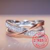 Huitan Mode Zweifarbige 925 Sterlingsilber Kreuzringe für Damen Roségoldfarben und Glänzende Zirkonia-Ringe Neuartige Anhänger Partyschmuck