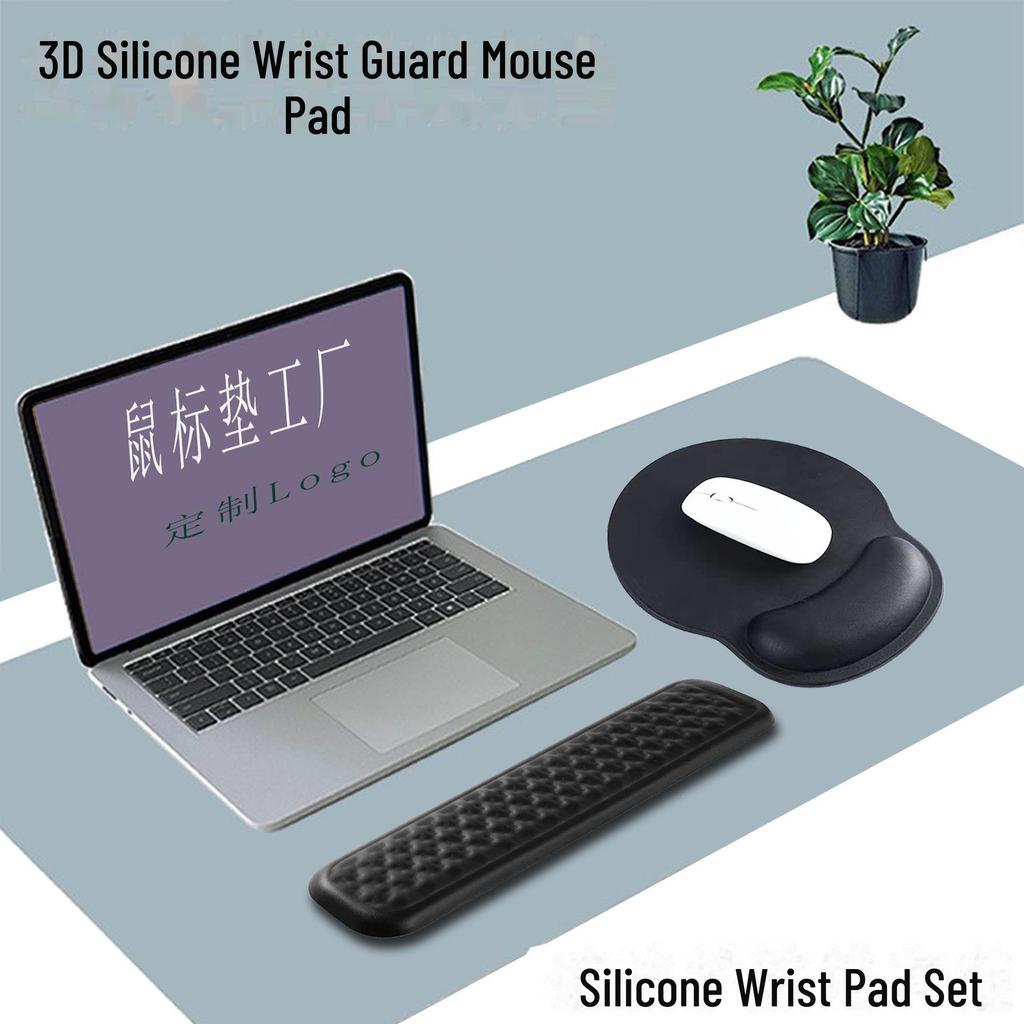 Einfarbiges PU-Mauspad mit Silikon-Handgelenkstütze - Einfache Leder-Tastatur-Handgelenkauflage