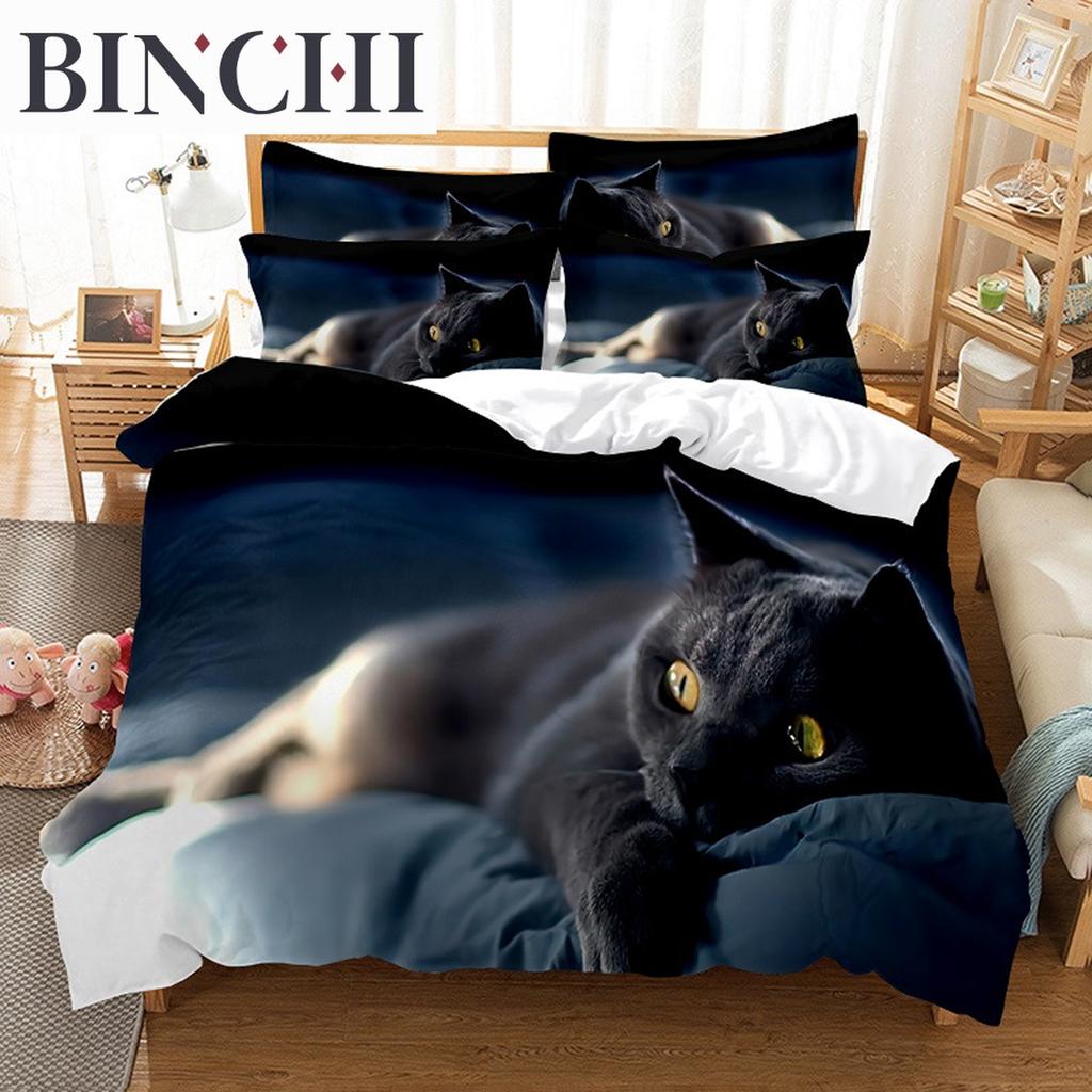 Schwarze Katze Bettwäsche Set Bettbezug Set 3D Bettwäsche Digitaldruck Bettwäsche Queen Size Bettwäsche Set Modisches Design