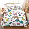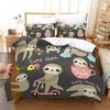 Niedlicher Cartoon Faultier Bettbezug Floraler Blätterdruck Bettwäscheset Für Kinder Teenager Schlafzimmerdeko Blumen Bettdeckenbezug Kissenbezüge