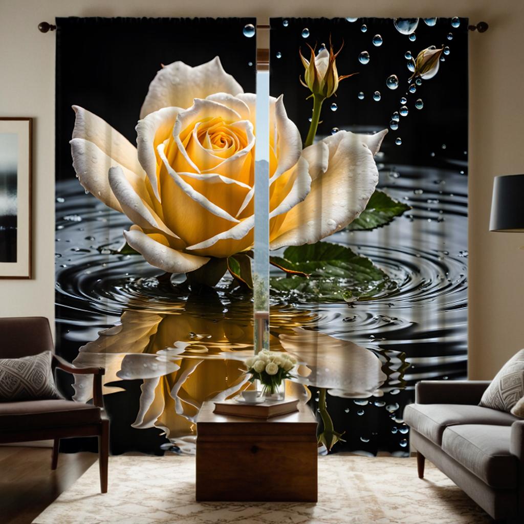 2 Stück HD Wasserrose Dekoschals Gelb digital bedruckte Vorhänge Heimdekorationsstil Dekoration Wohnzimmer Schlafzi