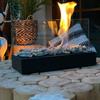 Der längliche Brennstoffbehälter ermöglicht eine schöne Präsentation des Feuers in der Mitte des Biokamins.
