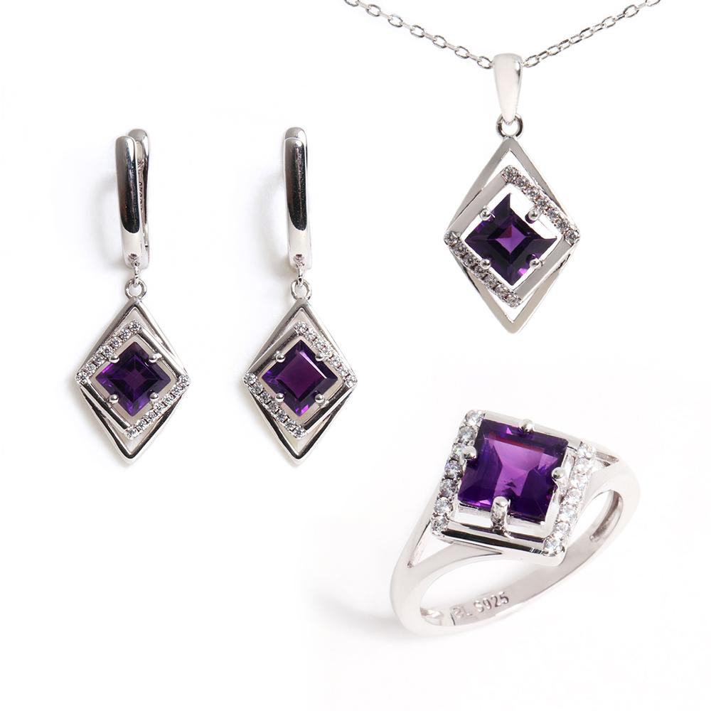 Natürlicher afrikanischer Amethyst, Ring, Ohrringe, Anhänger, Halskette, 925er Silber, Schmuckset für Damenjubiläen, Hochzeiten und Bankette