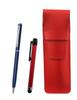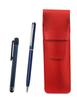 Set aus Federmäppchen aus Rindsleder, Radiergummi in Stiftform (schwarze Achse), und Druckbleistift (blaue Achse)