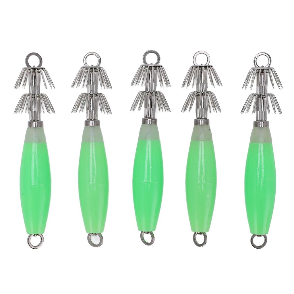 5 Stück Leuchtender Tintenfischhaken Leuchtet im Dunkeln Angelköder Jigs Grün für Salzwasserangeln