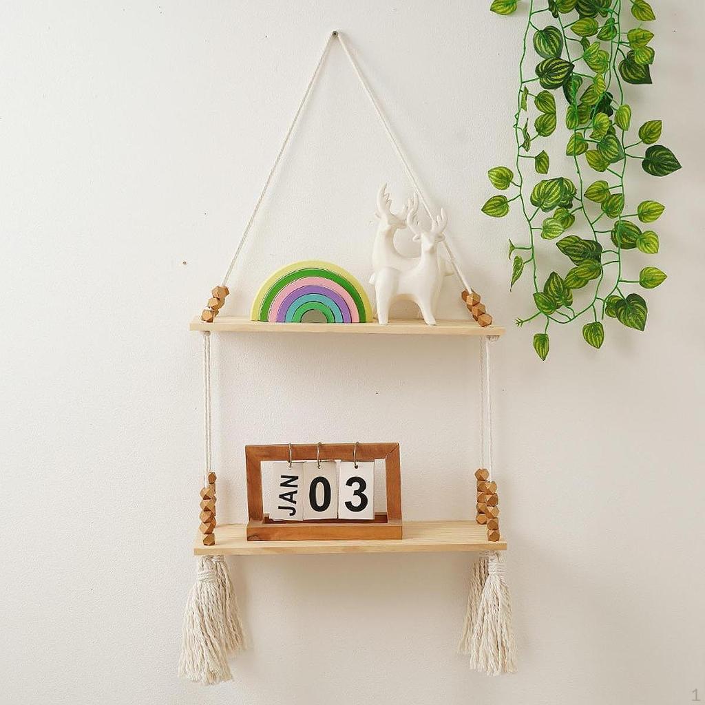 - 【Premium Material】: The boho macrame wall hanging shelf adopts wood and cotton material, has a good texture, is not easy to break, and ensures a long time to use
