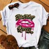 Wimpern und Lippen Print Damen T-Shirt Mode Grafik T-Shirts Lustige Happy Birthday Party T-Shirt Lässige weibliche Tops T-Shirts