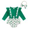 Baby Mädchen 2-teiliges Frühlingsoutfit Rüschen Langarm Schleife vorne Strampler mit Stirnband Set Neugeborenenkleidung