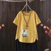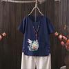 Perfekt für den Sommer, dieses lässige T-Shirt verfügt über einen Libellendruck, der von europäischen und amerikanischen Stilen inspiriert ist. Hergestellt aus einer bequemen Mischung aus Baumwolle und Hanf, bietet es ein leichtes und atmungsaktives Tragegefühl. Das Kurzarm-Design mit V-Ausschnitt verleiht einen Hauch von Eleganz und sorgt gleichzeitig für eine bequeme Passform. Dieses T-Shirt ist perfekt für Ausflüge bei warmem Wetter und verbindet mühelos Stil mit Komfort.