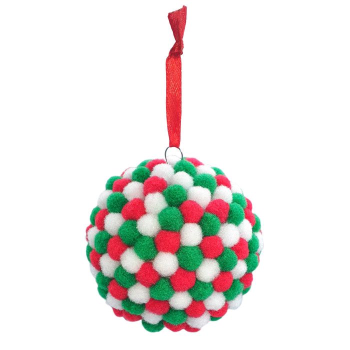 Boule de Noël à décorer avec pompons 6 cm