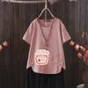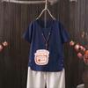 Perfect for summer, this casual T-shirt features a dragonfly print that draws inspiration from European and American styles. Made from a comfortable blend of cotton and hemp, it provides a lightweight and breathable feel. The short-sleeved and V-neck design adds a touch of elegance while ensuring an easy fit. Perfect for going outside in warm weather, this T-shirt effortlessly combines style with comfort.