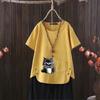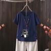 Perfect for summer, this casual T-shirt features a dragonfly print that draws inspiration from European and American styles. Made from a comfortable blend of cotton and hemp, it provides a lightweight and breathable feel. The short-sleeved and V-neck design adds a touch of elegance while ensuring an easy fit. Perfect for going outside in warm weather, this T-shirt effortlessly combines style with comfort.