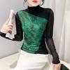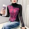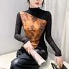 T-Shirt im koreanischen Stil mit Aufdruck für Damen Langärmlig Winter Neu Halboher Kragen Mesh Basisshirt Slim Body