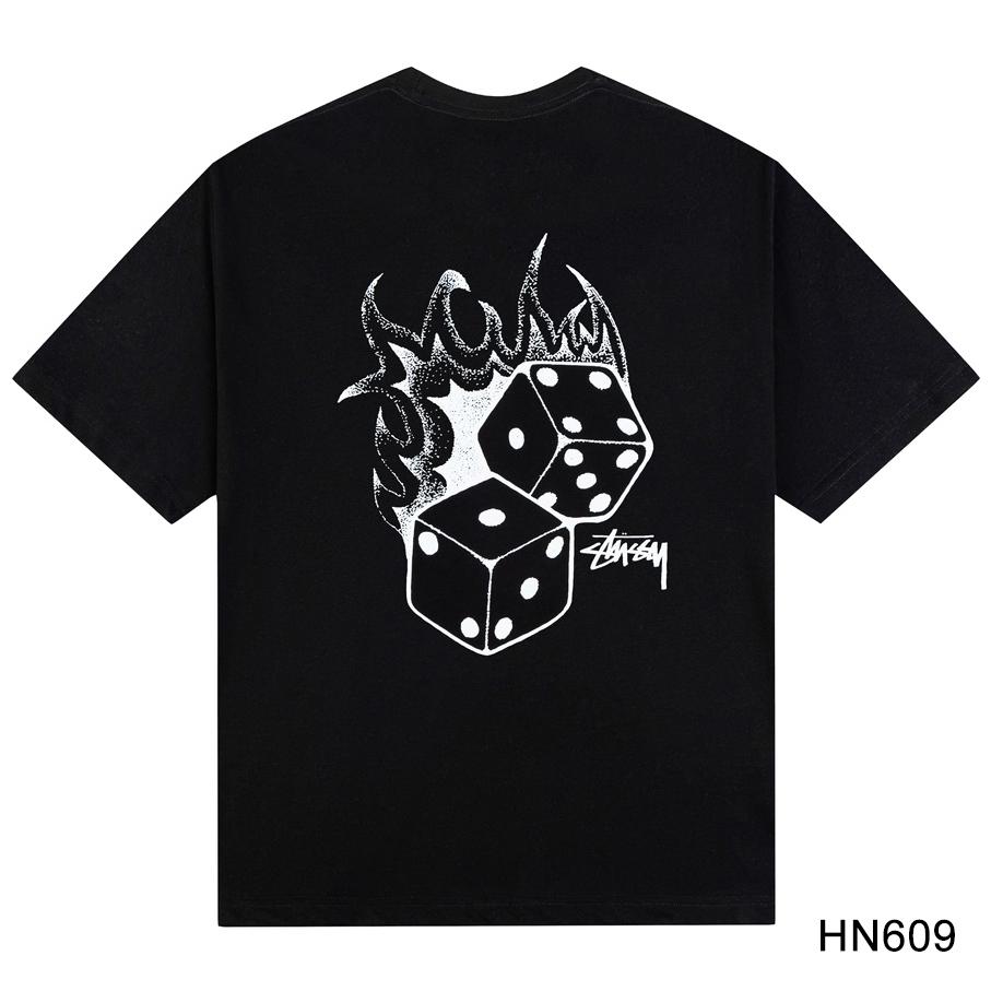Stussy 2025 Sommer Neues hochwertiges Rundhals-T-Shirt aus Baumwolle für Männer und Frauen mit Retro-Flammenwürfel-Briefdruck-Paar-T-Shirt