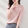 Women Sweaters Pullovers 2025 Summer Short Sleeve O-Neck White Knitted Sweater Women Tops Pullover JJ320